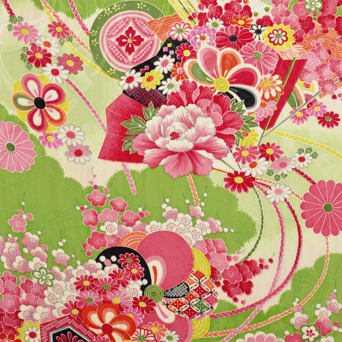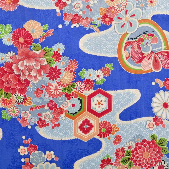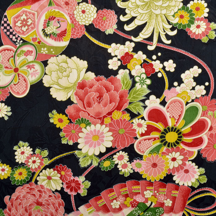 ちりめんのようなシボはありませんが、地紋が織り込まれており、独特の艶と合いまって圧倒的な高級感が持ち味です。無地に加えて、古典着物柄が、まるで古布の味わいを忠実に再現したようです。吊るし雛、人形、押絵などの小物細工にピッタリの生地です。
